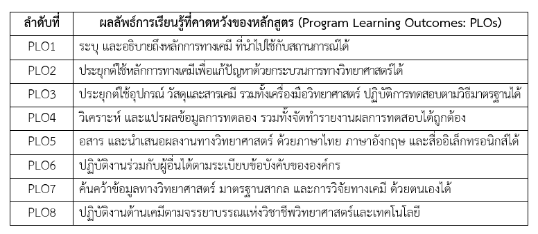 หลักสูตรวิทยาศาสตรบัณฑิต สาขาวิชาเคมี หลักสูตรปรับปรุง พ.ศ. 2569